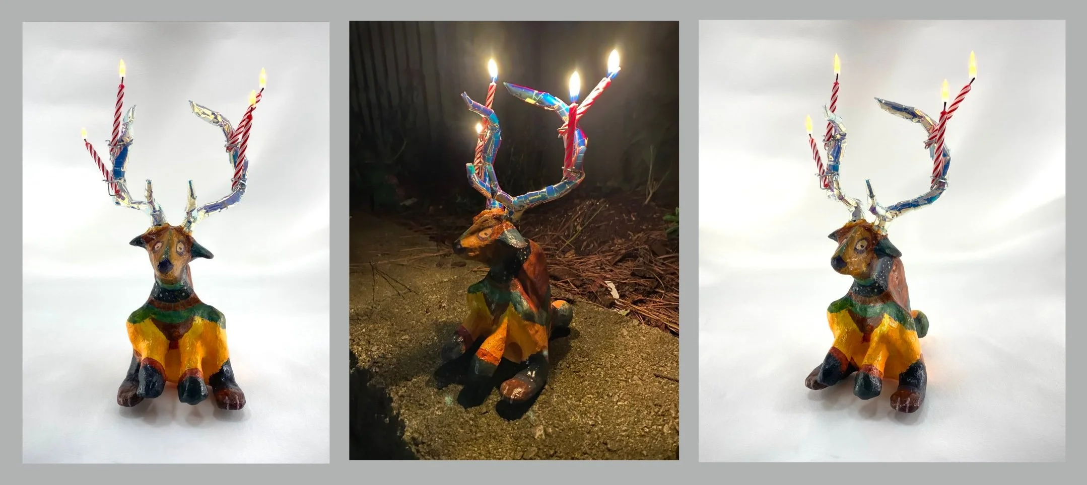 Medium: Paper Mache Clay, Paint, Wire, Candles